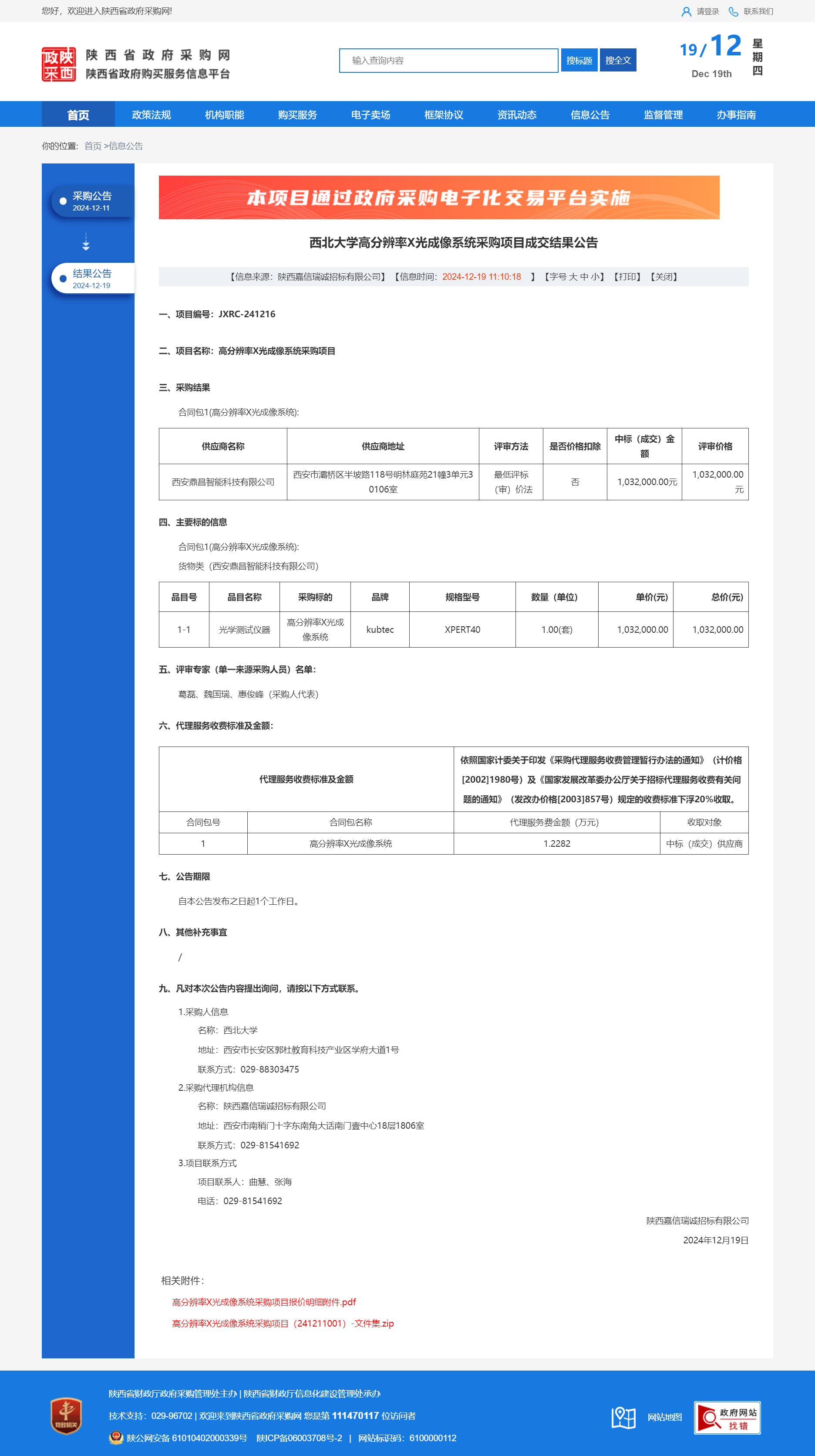 8868体育登录高分辨率X光成像系统采购项目成交结果公告 作者:采购与招标办公室 编辑: 时间:2024-12-19 原公告链接:https://www.ccgp-shaanxi.gov.cn/freecms/site/shaanxi/ggxx/info/2024/8a69c5a59218576d0193dcdefa916c53.html?noticeType=001023¬iceId=68a09fa3-bdb8-11ef-8063-08c0eb20c666