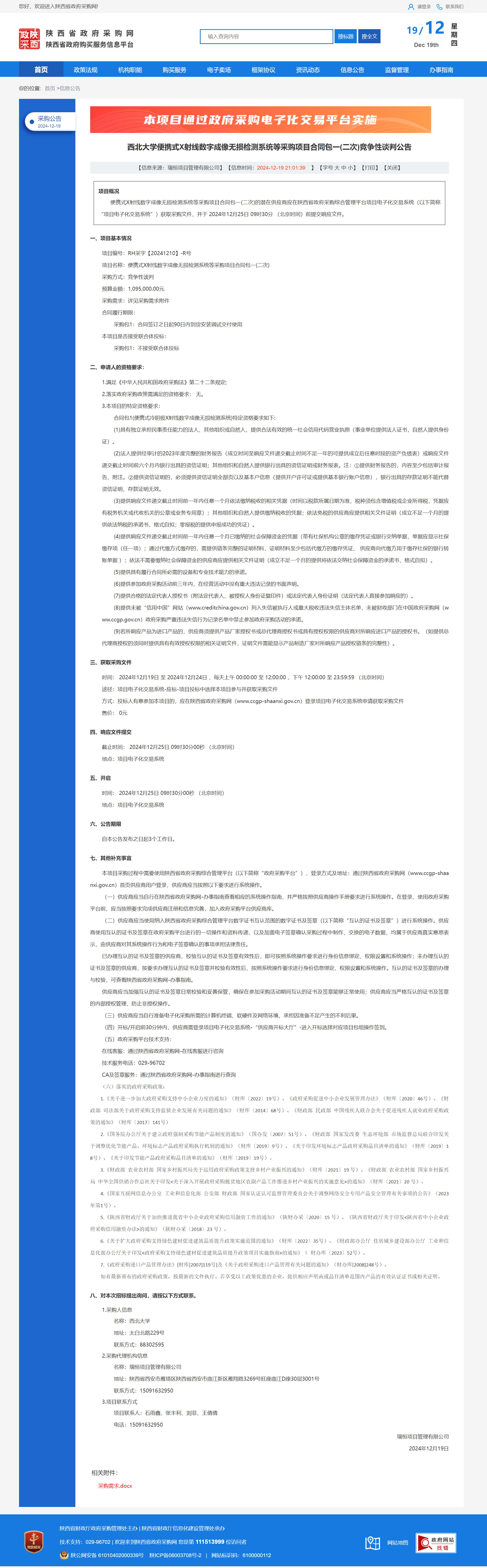 8868体育登录便携式X射线数字成像无损检测系统等采购项目合同包一(二次)竞争性谈判公告