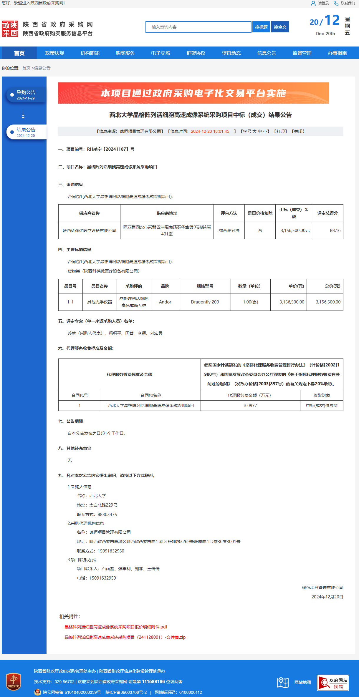 8868体育登录晶格阵列活细胞高速成像系统采购项目中标(成交)结果公告 作者:采购与招标办公室 编辑: 时间:2024-12-20 原公告链接:https://www.ccgp-shaanxi.gov.cn/freecms/site/shaanxi/ggxx/info/2024/8a69c95d921859f00193e29f761501c8.html?noticeType=001021¬iceId=0e797da5-bebb-11ef-8063-08c0eb20c666