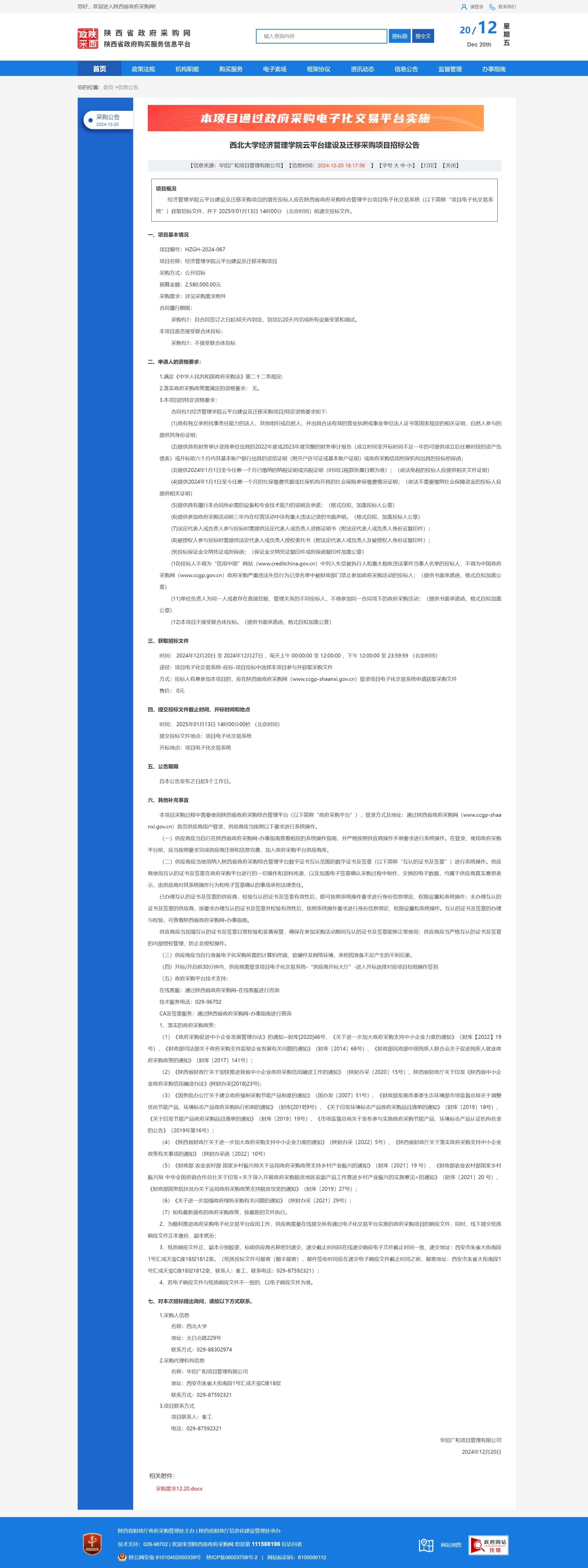 8868体育登录经济管理学院云平台建设及迁移采购项目招标公告 作者: 编辑:薛利娟 时间:2024-12-20 原公告链接:https://www.ccgp-shaanxi.gov.cn/freecms/site/shaanxi/ggxx/info/2024/8a69c95d921859f00193e37b7d887dda.html?noticeType=001011¬iceId=50eac1aa-bebd-11ef-8063-08c0eb20c666