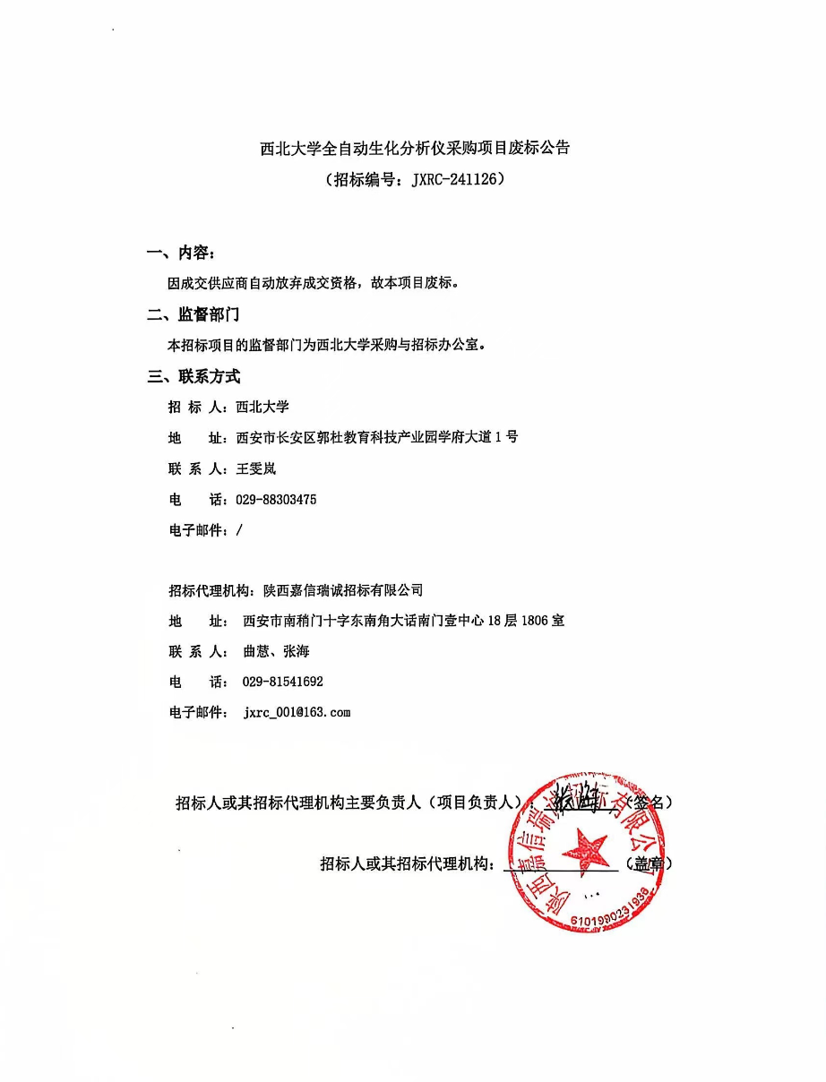 8868体育登录全自动生化分析仪采购项目废标公告 作者:采购与招标办公室 编辑: 时间:2024-12-24 原公告链接:http://bulletin.sntba.com/changeBulletin/2024-12-24/2002236.html