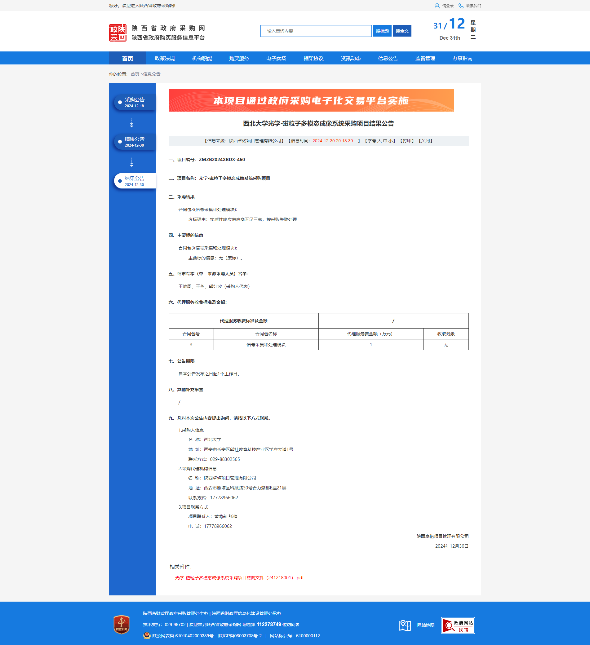 8868体育登录光学-磁粒子多模态成像系统采购项目结果公告