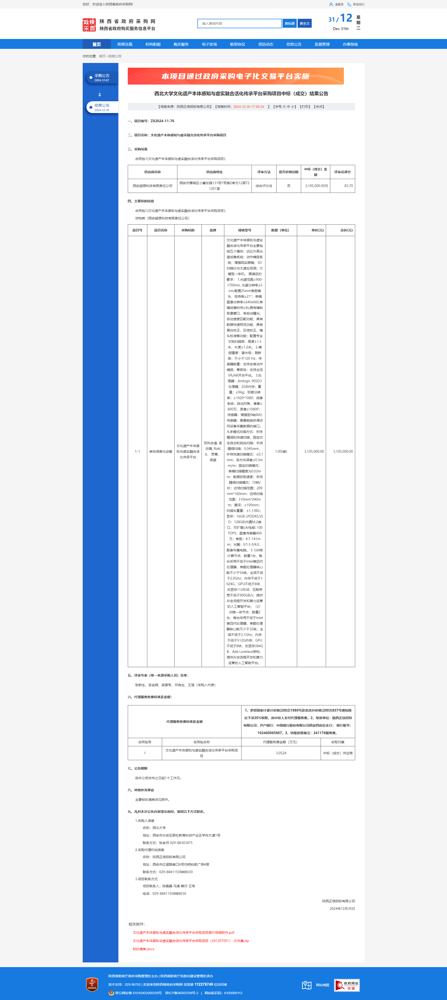 8868体育登录文化遗产本体感知与虚实融合活化传承平台采购项目中标(成交)结果公告