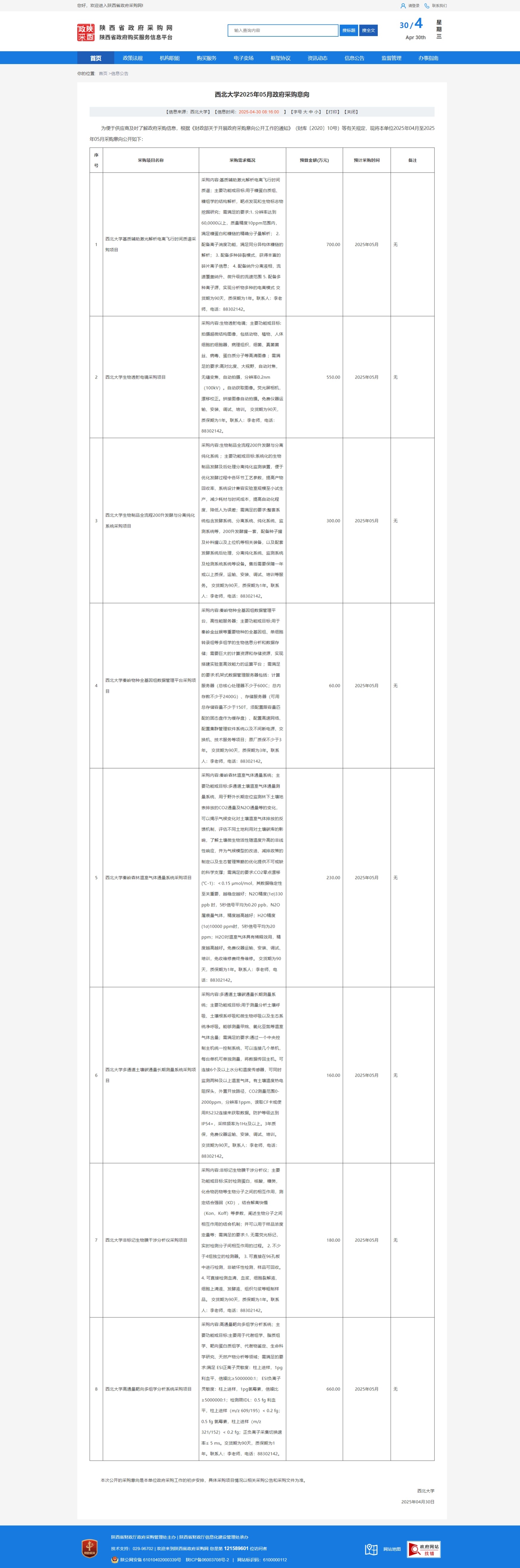 8868体育登录2025年05月政府采购意向(生命科学学院) 作者: 编辑:采购与招标办公室 时间:2025-04-30 原公告链接:https://www.ccgp-shaanxi.gov.cn/freecms/site/shaanxi/ggxx/info/2025/8a69c1879656b6c301967b16d4213330.html?noticeType=59¬iceId=2c5b777a-255a-11f0-8063-08c0eb20c666