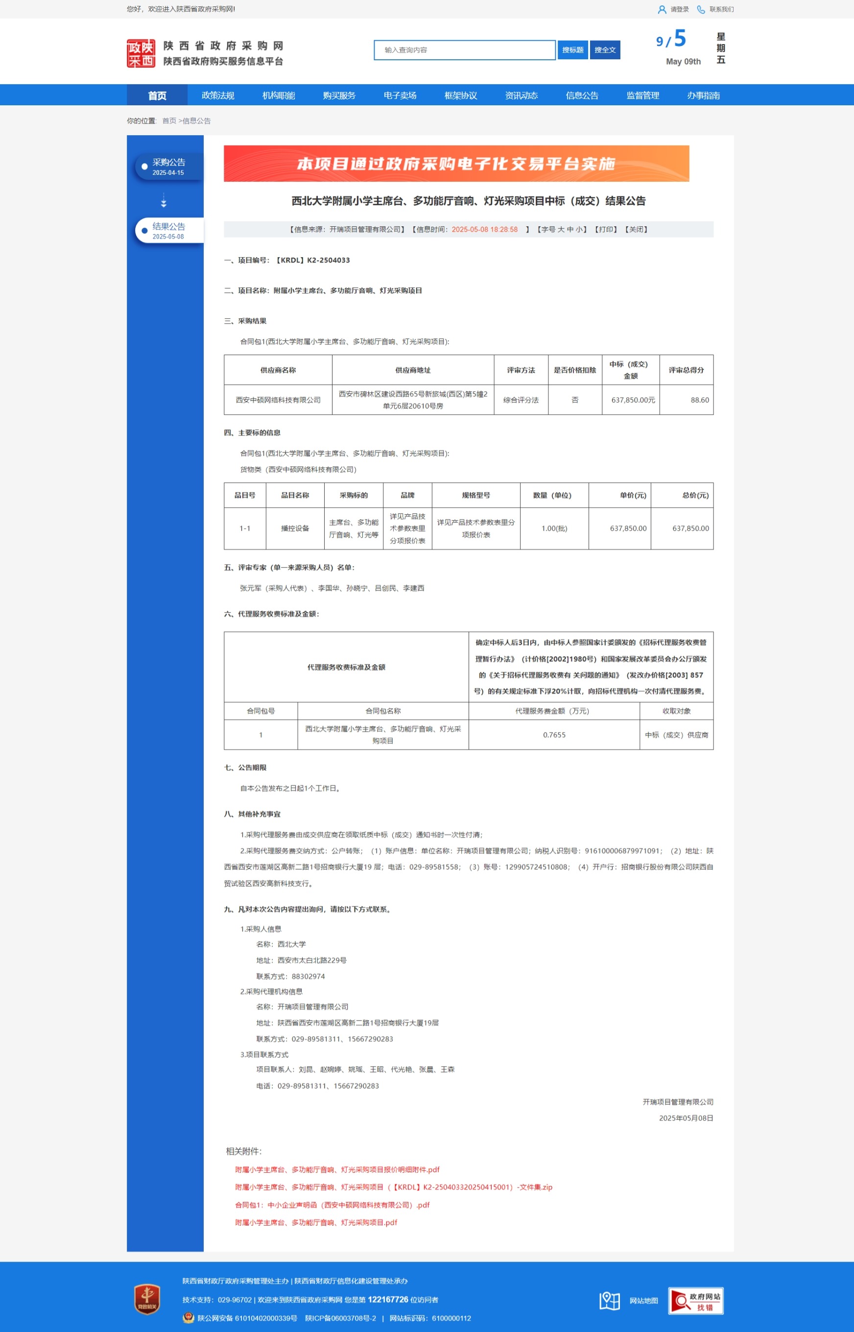 8868体育登录附属小学主席台、多功能厅音响、灯光采购项目中标(成交)结果公告 作者: 编辑:采购与招标办公室 时间:2025-05-09 原公告链接:https://www.ccgp-shaanxi.gov.cn/freecms/site/shaanxi/ggxx/info/2025/8a69c6749672185f0196af22725f03a7.html?noticeType=001021¬iceId=250492aa-2bf9-11f0-8063-08c0eb20c666