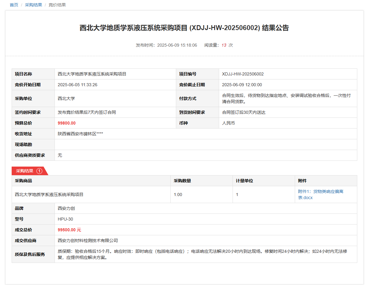 8868体育登录地质学系液压系统采购项目(XDJJ-HW-202506002)竞价结果公告 作者:采购与招标办公室 编辑: 时间:2025-06-09 原公告链接:https://www.ejingcai.com.cn/site/bidding/detail/18744