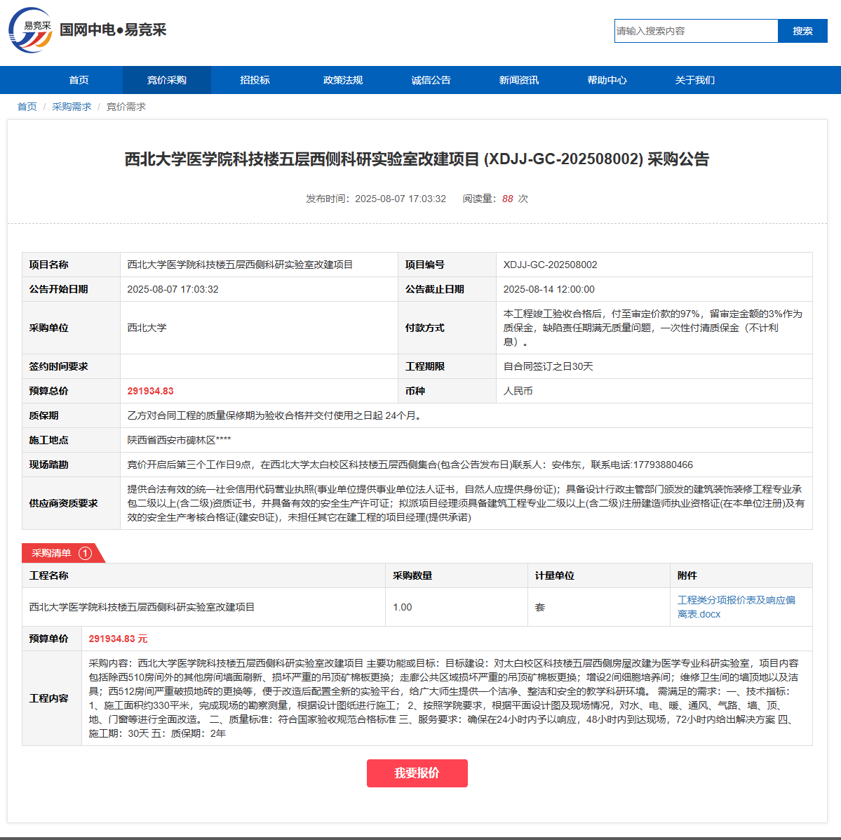 8868体育登录医学院科技楼五层西侧科研实验室改建项目 (XDJJ-GC-202508002) 采购公告 作者: 编辑:党丹珩 时间:2025-08-08 公告地址:https://www.ejingcai.com.cn/site/bidding/detail/19914