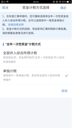三、年终绩效可以选择单独计税或并入综合所得计税,可在标准申报界面点击“工资薪金”,分两种方式进行选择试算,选择最有利的计税方式申报;
