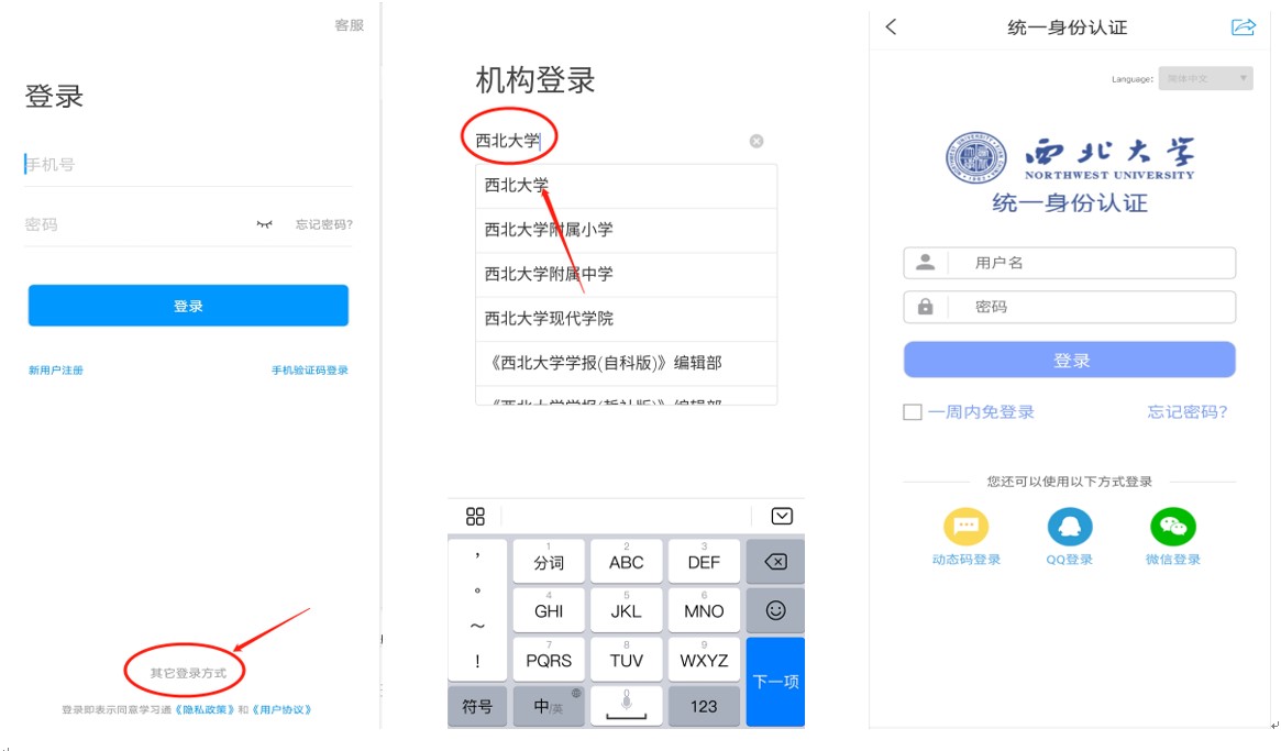 5.下载过后,进入登录页面——“其它登录方式”——单位栏输入“8868体育登录”——跳转到学校统一身份认证登录。