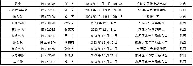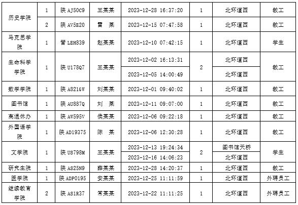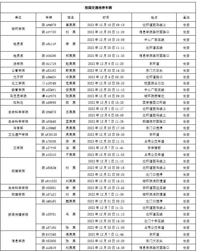 为加强校内道路交通安全管理,规范校内交通秩序,根据《8868体育登录校园道路交通管理办法》有关要求,现将2023年12月校园交通违章车辆予以曝光,所在单位负责对本单位违章师生员工进行交通安全教育和日常管理。