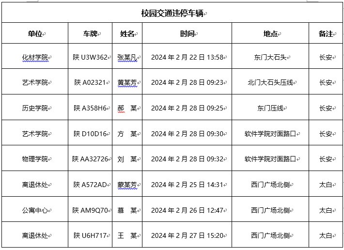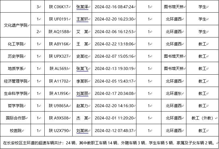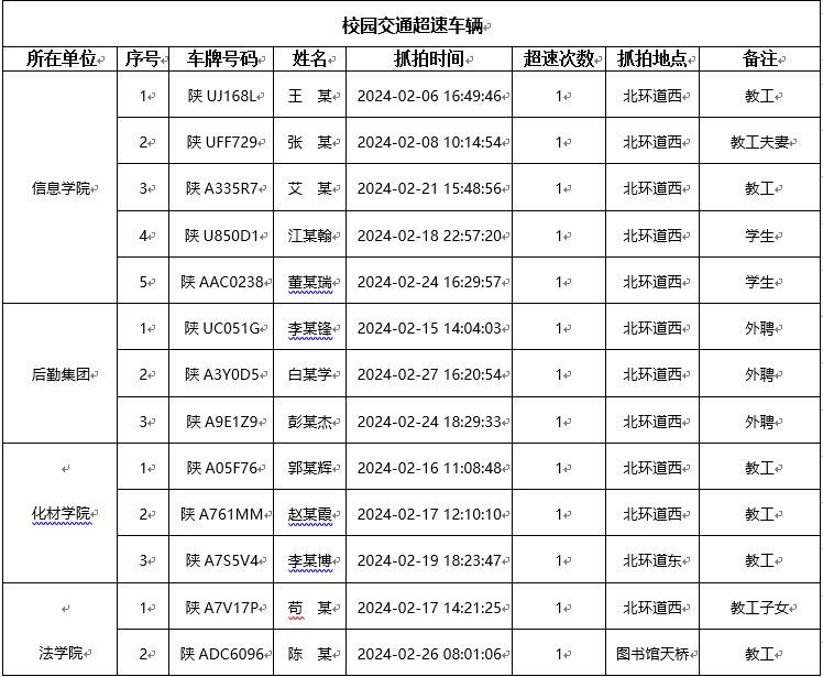 为加强校内道路交通安全管理,规范校内交通秩序,根据《8868体育登录校园道路交通管理办法》有关要求,现将2024年2月校园交通违章车辆予以曝光,所在单位负责对本单位违章师生员工进行交通安全教育和日常管理。