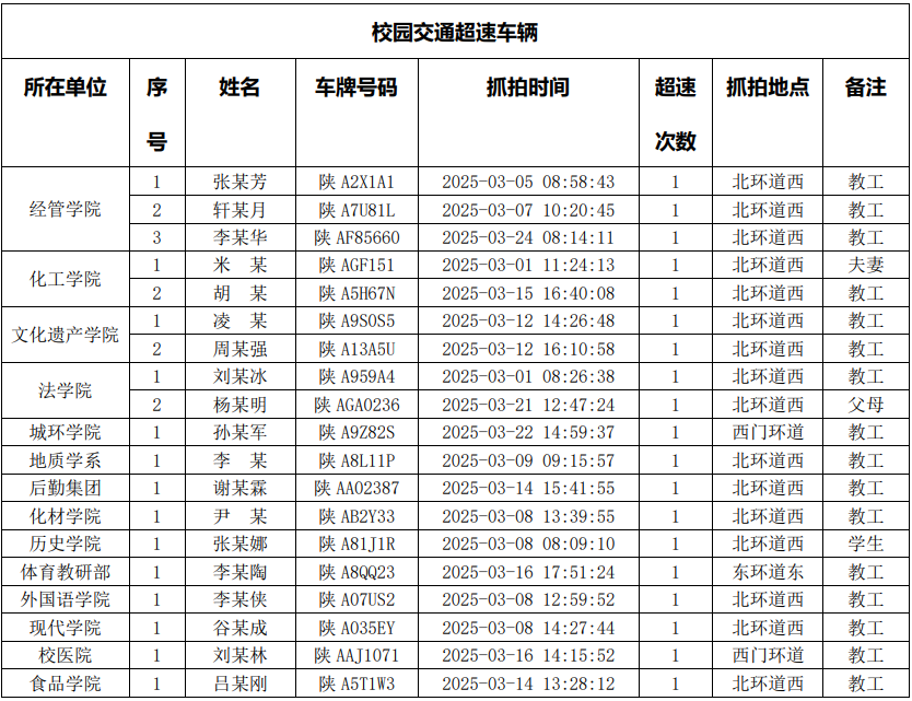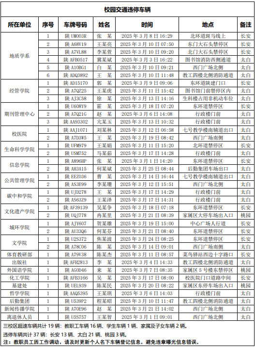 为进一步加强校园交通管理,保障校园交通安全有序,维护学校正常的教学、科研和生活秩序,切实保护师生员工的人身财产安全,根据《8868体育登录校园交通安全管理规定》的相关要求,现将2025年3月校园交通违章车辆予以曝光,具体要求与违章信息如下: