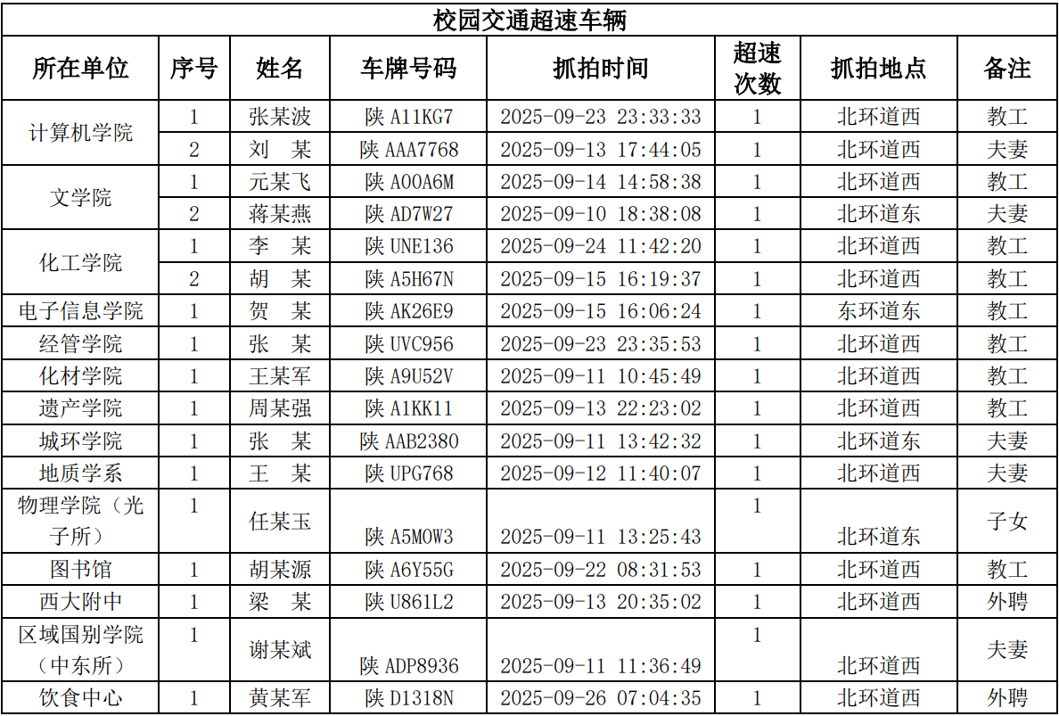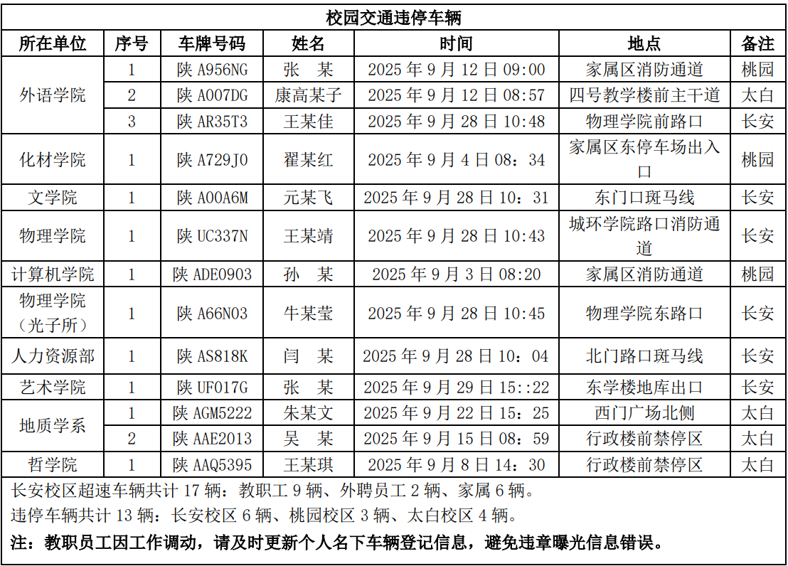 为进一步加强校园交通管理,保障校园交通安全有序,维护学校正常的教学、科研和生活秩序,切实保护师生员工的人身财产安全,根据《8868体育登录校园交通安全管理规定》的相关要求,现将2025年9月校园交通违章车辆予以曝光,具体要求与违章信息如下: