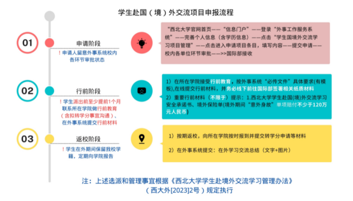 2.申请学生在确定录取后,应及时履行出国(境)前相关行前手续。有关本项目学生的申请、行前、返校阶段情况说明,请见下图。
