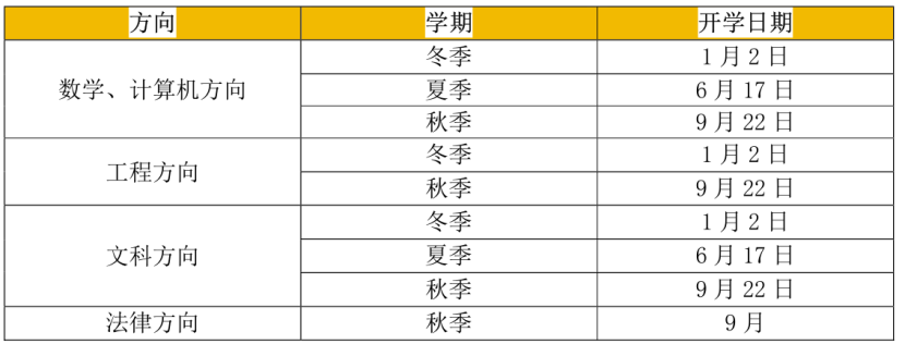 3.2025年各方向开学时间安排: