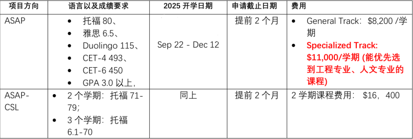 4.项目起止、截止申请时间、语言要求及费用