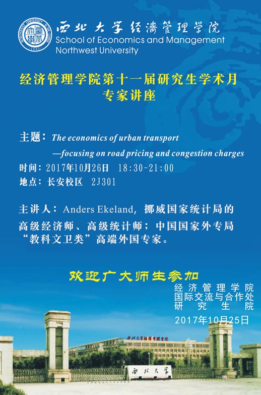 经济管理学院第十一届研究生学术月专家讲座——The economics of urban transport - focusing on road pricing and congestion charges