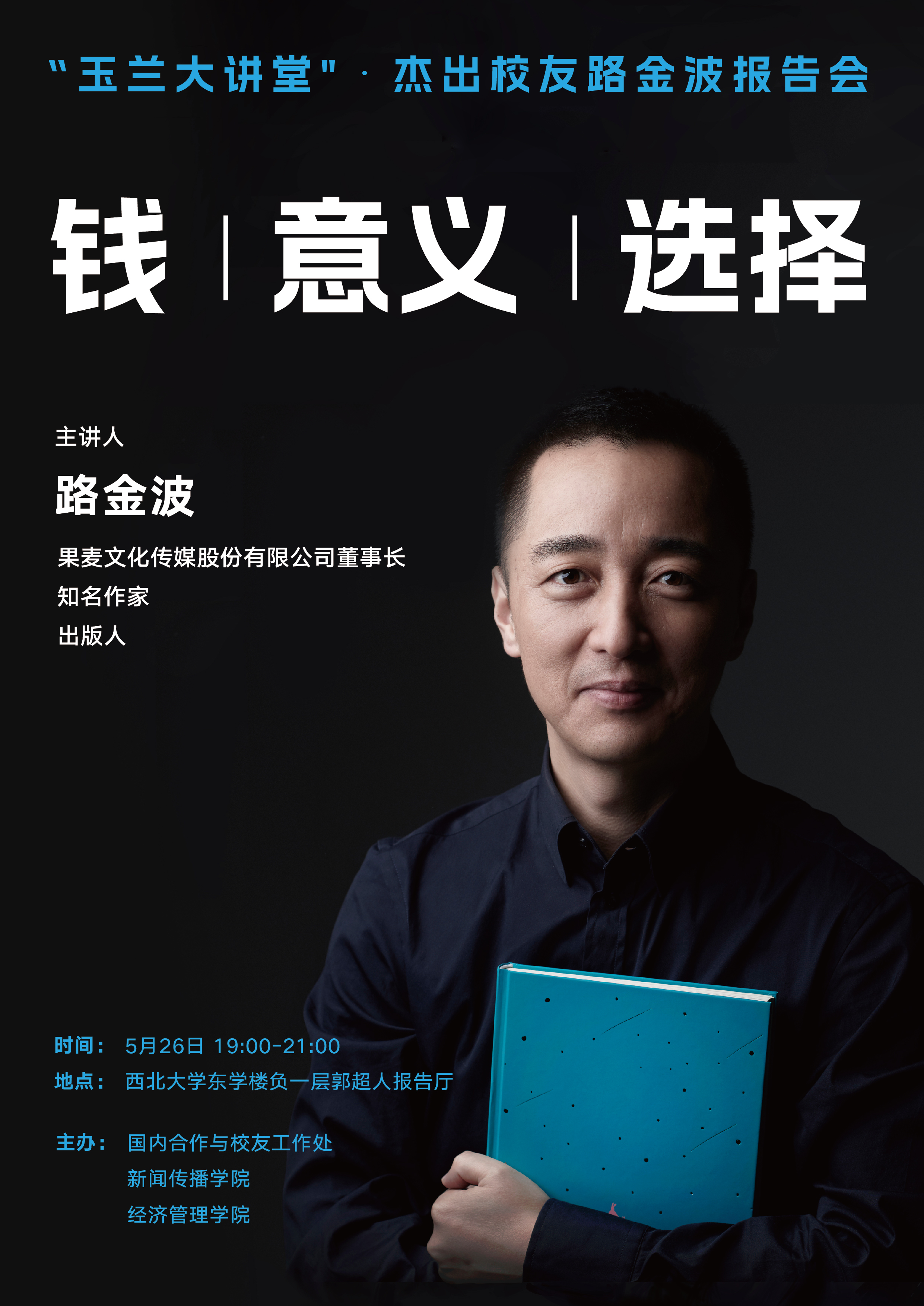 路金波于1997年毕业于8868体育登录经济学专业,2000年9月,加入榕树下中文网,任主编;2002年至2008年,任贝榕文化公司总编辑;2008年至2012年,任万榕书业公司总经理;2012年至今,担任果麦文化传媒股份有限公司董事长。果麦文化创立于2012年7月,是一家以互联网驱动的新出版公司,践行“以微小的力量推动文明”企业使命。2021年8月30日,果麦文化正式登陆深交所创业板。依托权威学术顾问团队,“果麦经典”积累了包含四千多种经典图书的数据库,截至 2022 年,“果麦经典”推出的《小王子》《浮生六记》《人性的弱点》等图书产品的销量超数百万册;果麦文化互联网用户数达7400万;创立独立书店品牌“2040书店”,以直营或品牌联营形式在全国开设超过百余家门店。