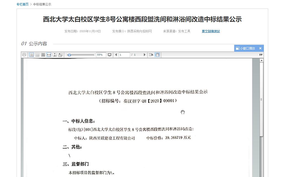 8868体育登录太白校区学生8号公寓楼西段盥洗间和淋浴间改造中标结果公示 作者: 编辑: 时间:2020-11-19 原文链接:http://bulletin.sntba.com/resultBulletin/2020-11-19/245519.html