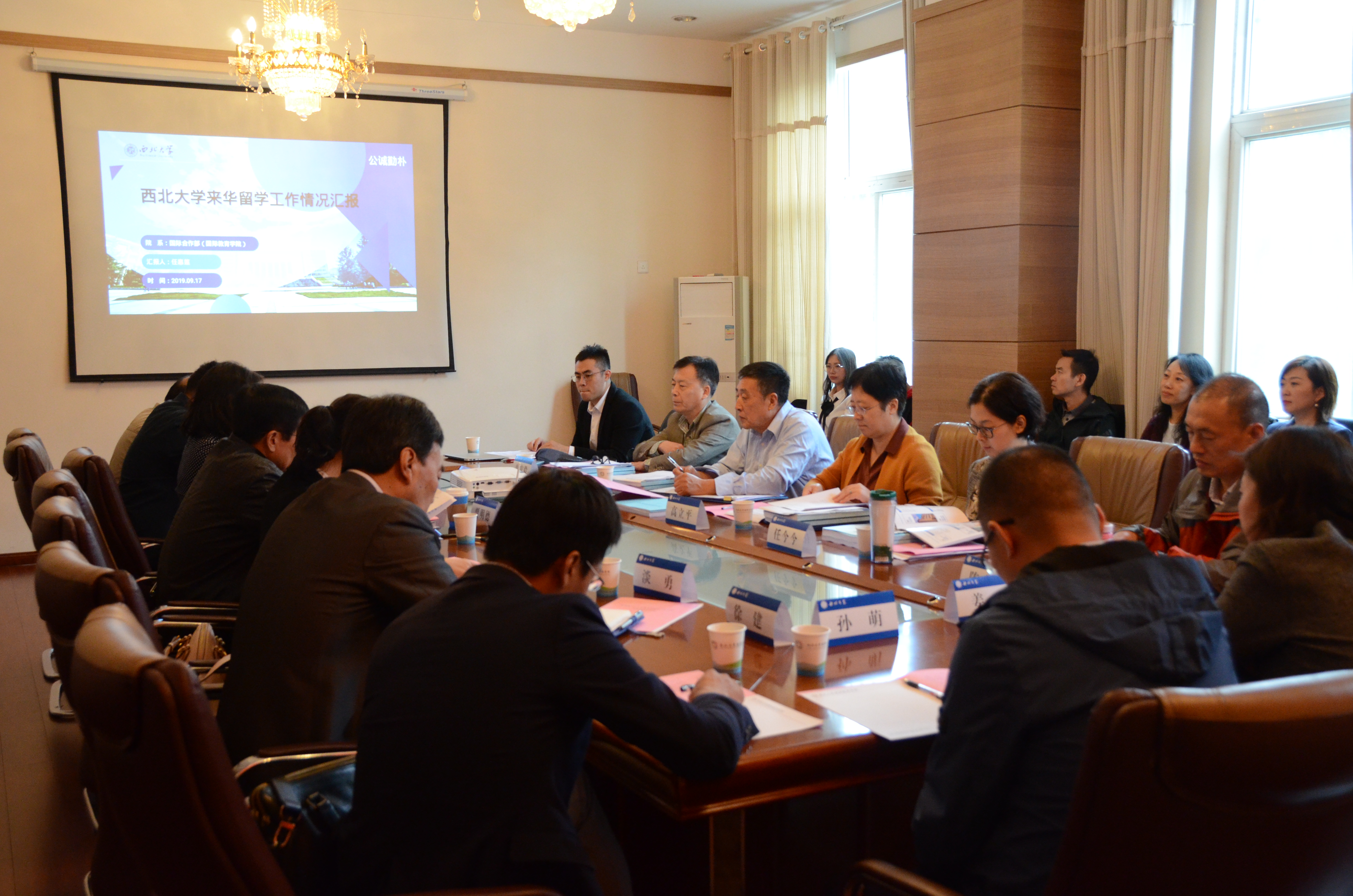 9月17日下午,细雨初歇,日展云稍。教育部来华留学工作专项调研专家组成员高立平、郭凤林、任今今一行三人来8868体育登录开展专项工作调研,陕西省教育厅对外合作与交流处副处长郭宏毅一同调研。