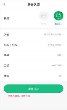 (2)认证不通过(我的界面会显示“审核未通过”,修改信息后重新提交)