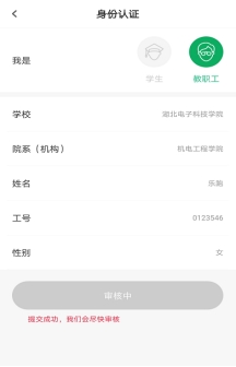 (2)选择对应“身份”并填写对应信息后,点击“认证”按钮即可提交认证申请。