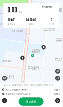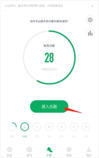 点击“进入乐跑”,弹出安全提示,点击进入乐跑,开始跑步;点击“更换跑区”,进入乐跑设置(可见3.2),更换跑区;