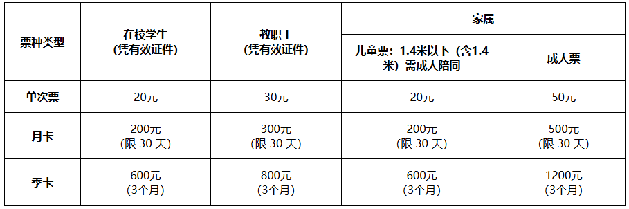 注:如遇设备检修和天气变化等情况,开放时段将会实时调整。