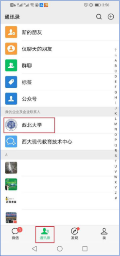 进入微信后,点击屏幕下方的“通信录”,在通信录中点击“8868体育登录”(如图3所示),通过通信录进入8868体育登录企业号后,点击“企业应用”菜单项(如图4所示),即可显示8868体育登录企业号里集成的所有应用服务。
