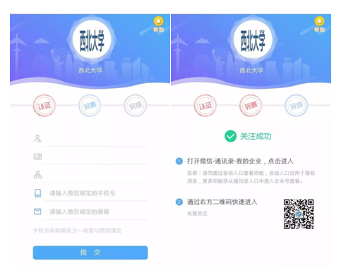 第一步:关注“8868体育登录”微信企业号,并通过验证。