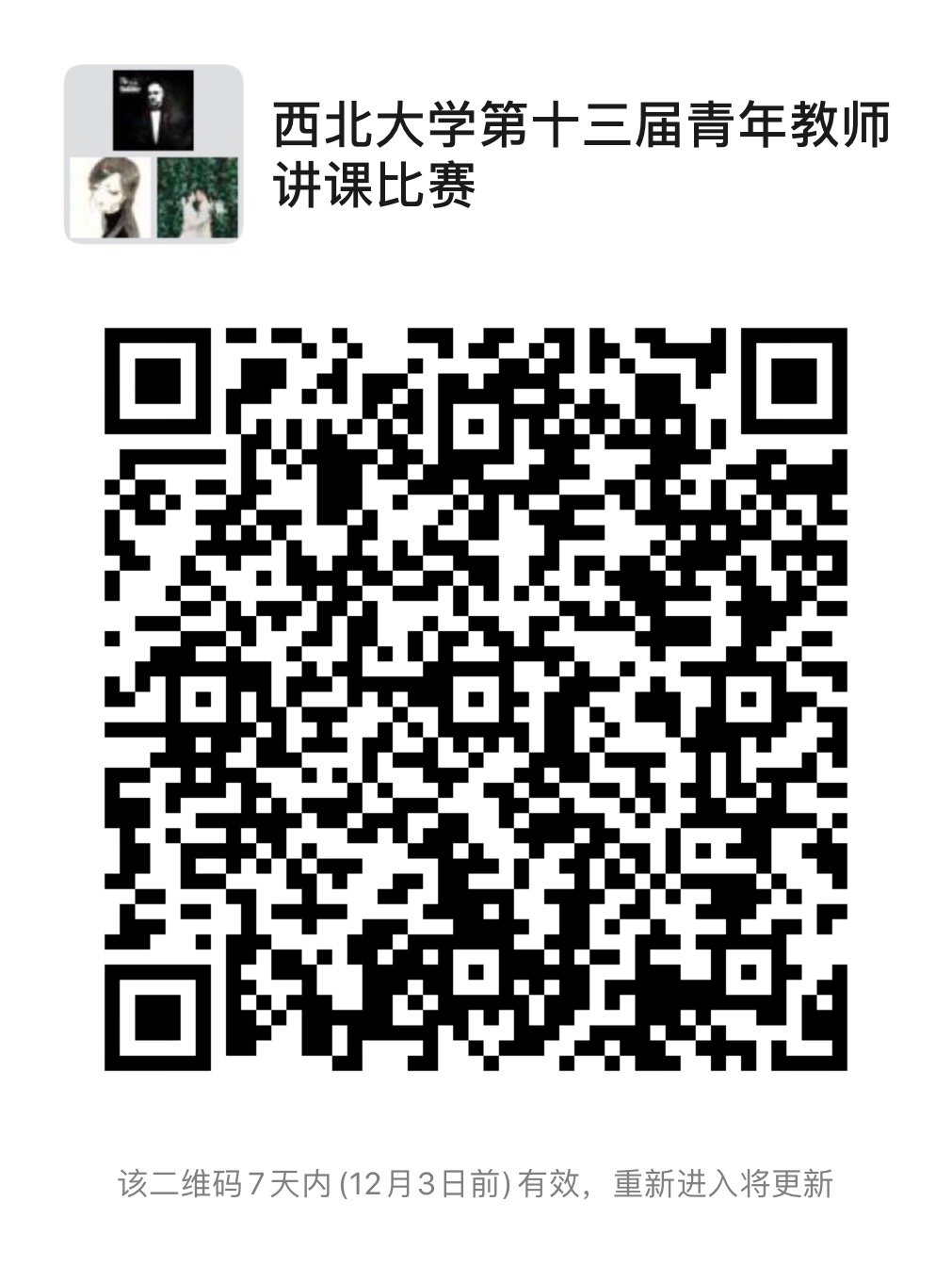 6.请参赛教师扫描下方二维码,加入“8868体育登录第十三届青年教师讲课比赛”微信群,并按照“单位+姓名”格式修改备注名。