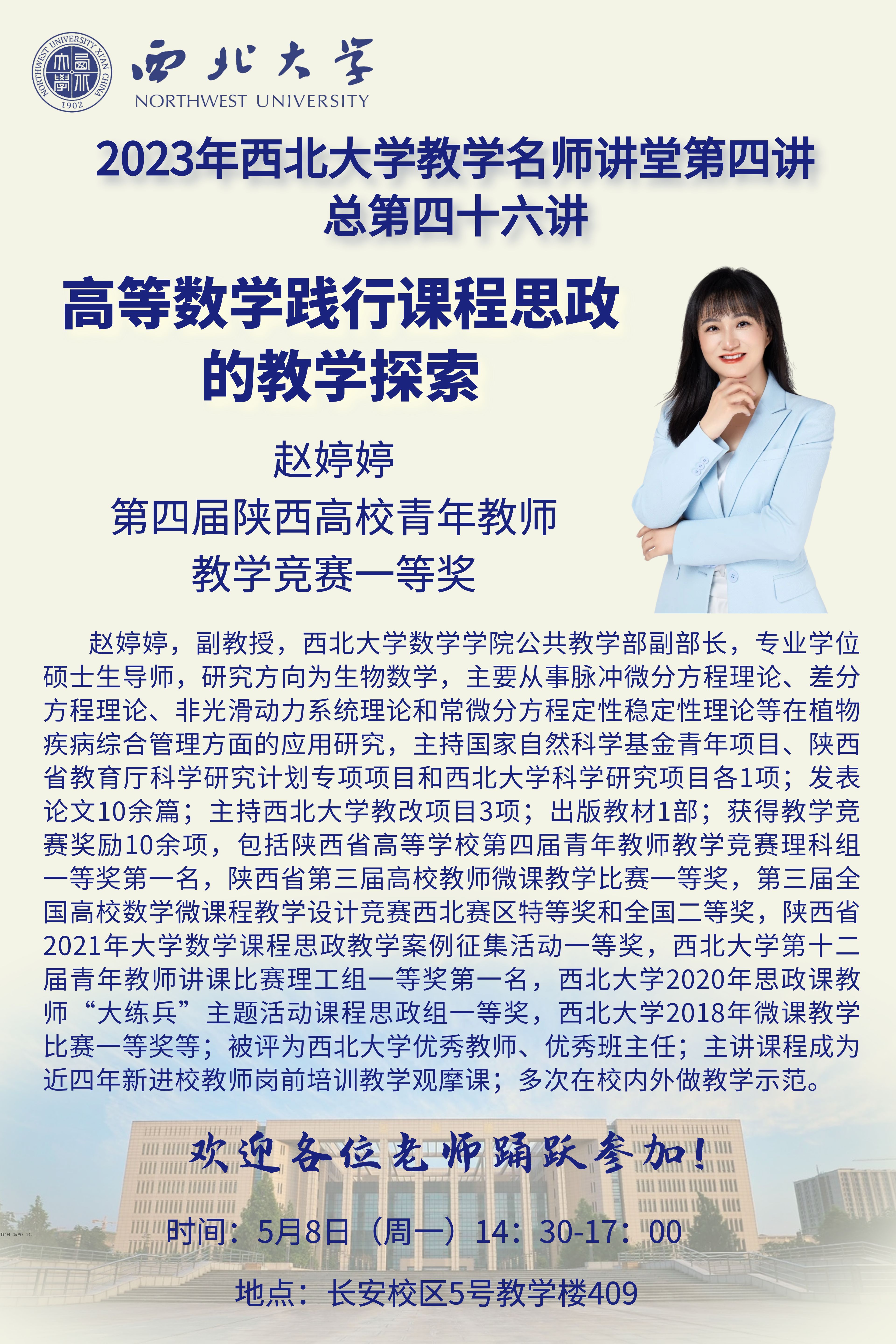 2023年8868体育登录教学名师讲堂第四讲 —— 高等数学践行课程思政的教学探索