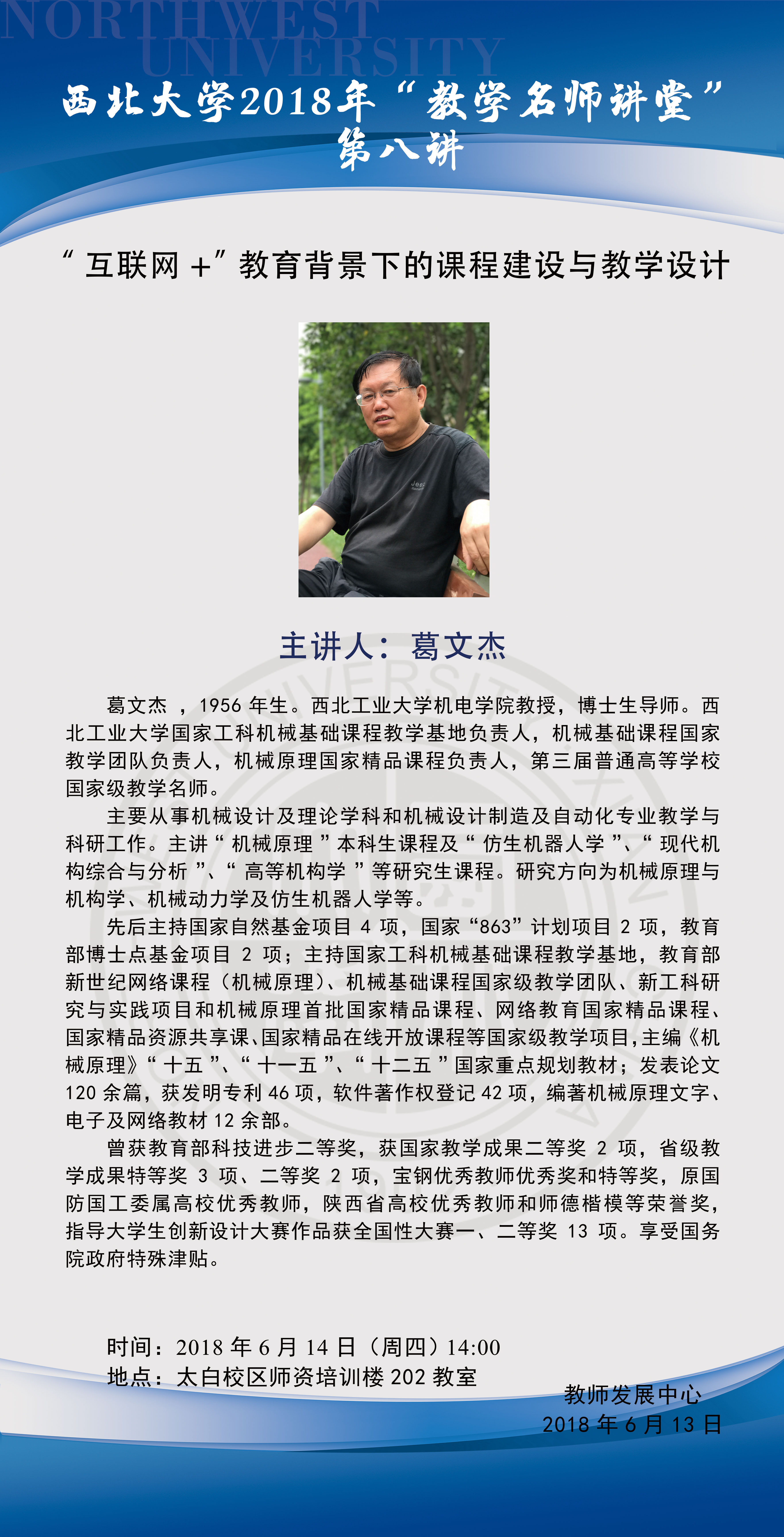 教学名师讲堂第八讲 - “互联网+”教育背景下的课程建设与教学设计