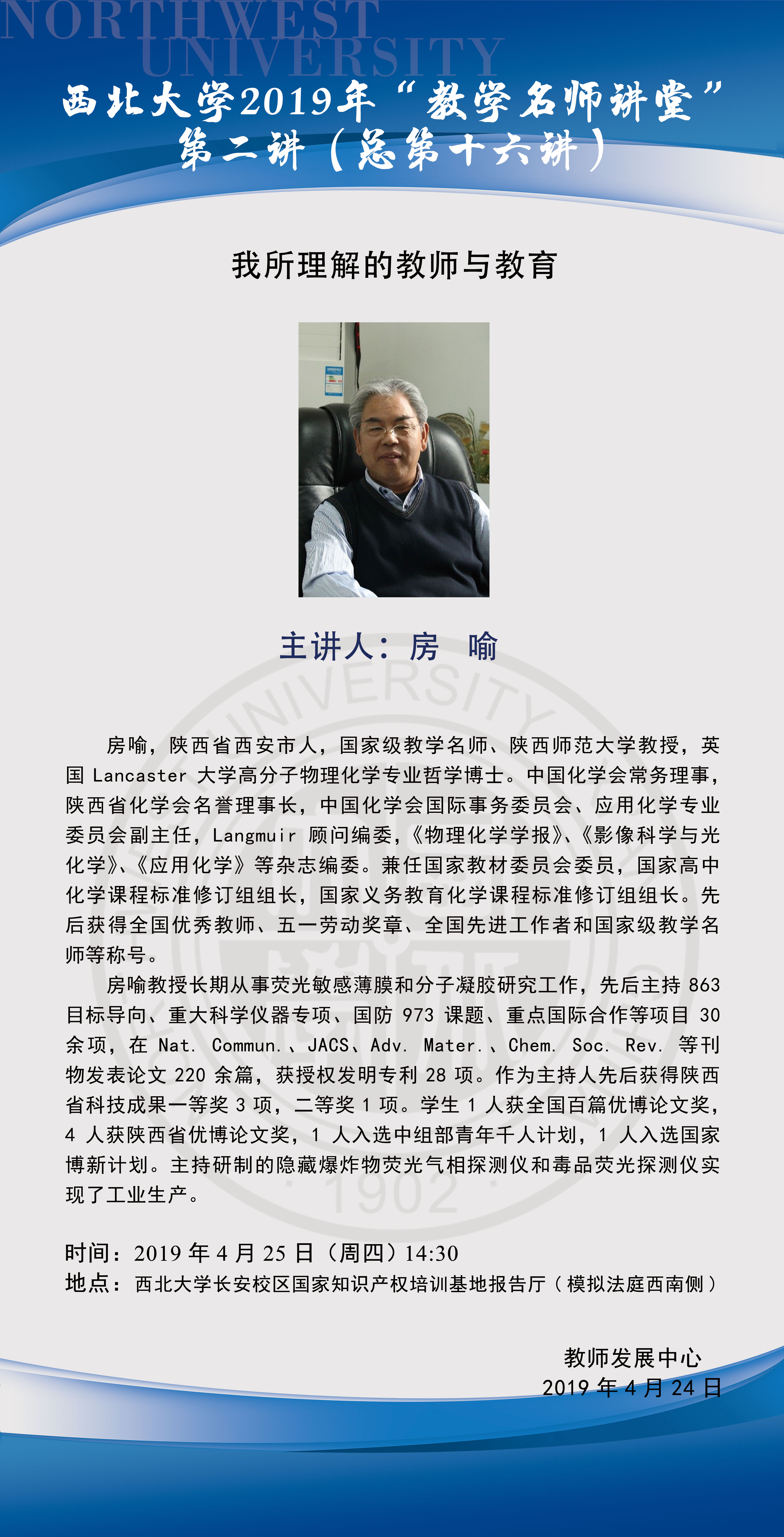 2019年教学名师讲堂第二讲 - 我所理解的教师与教育