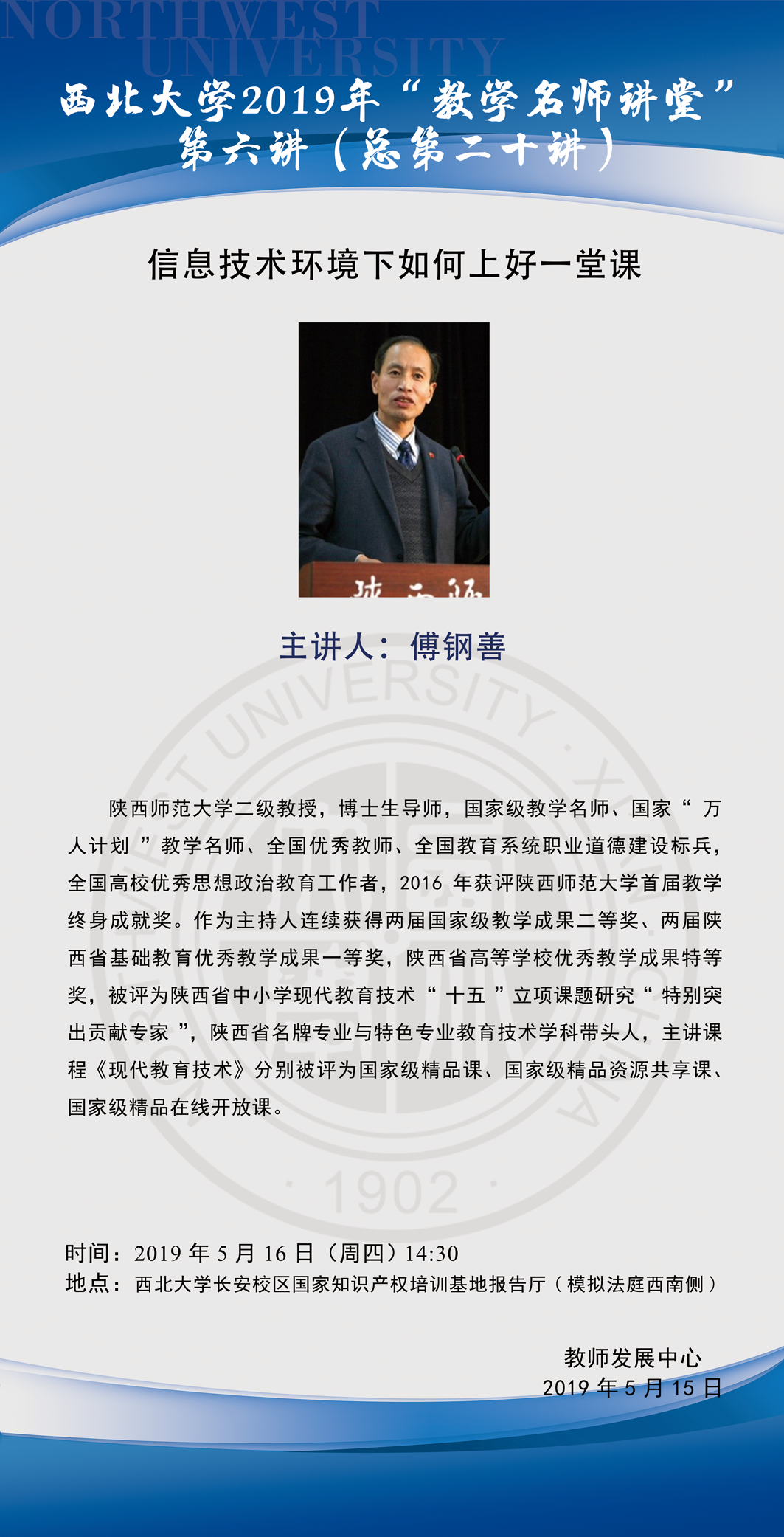 2019年教学名师讲堂第六讲 - 信息技术环境下如何上好一门课
