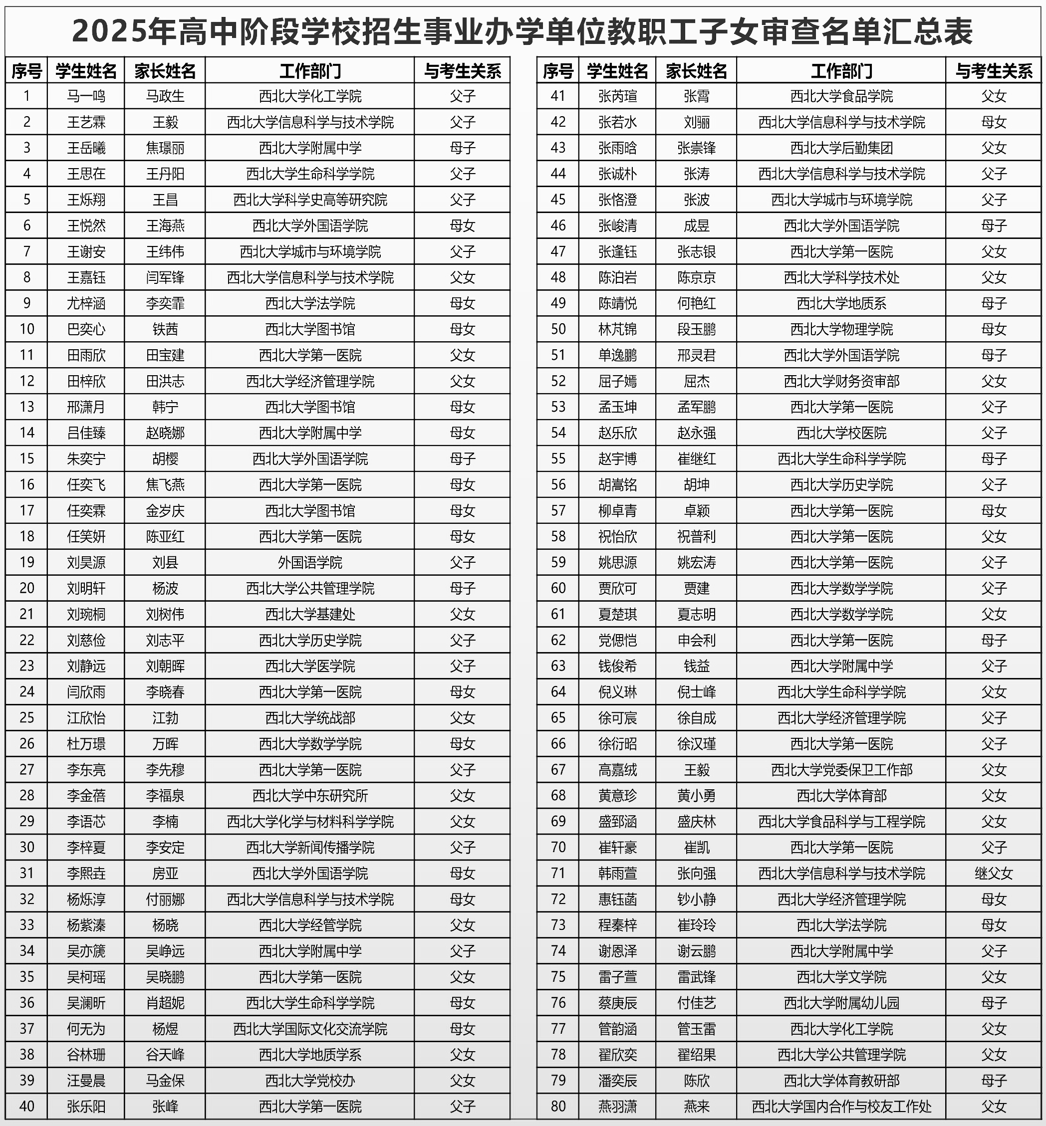 关于2025年高中阶段学校招生8868体育登录正式事业编制的教职工直系初中应届毕业子女审查结果的公示 作者: 编辑:唐毅 时间:2025-05-19 根据市、区教育局通知及要求,8868体育登录于2025年5月13日开展2025年高中阶段学校招生8868体育登录正式事业编制的教职工直系初中应届毕业子女审查工作。经大学人力资源部门、纪检部门审核,通过名单如下(按学生姓氏笔画数排序): 现予以公示,公示时间为5月19日至5月21日。公示期内,如对公示名单有异议,可通过来电形式向8868体育登录反映。 电 话:88363909 8868体育登录附属中学 2025年5月19日