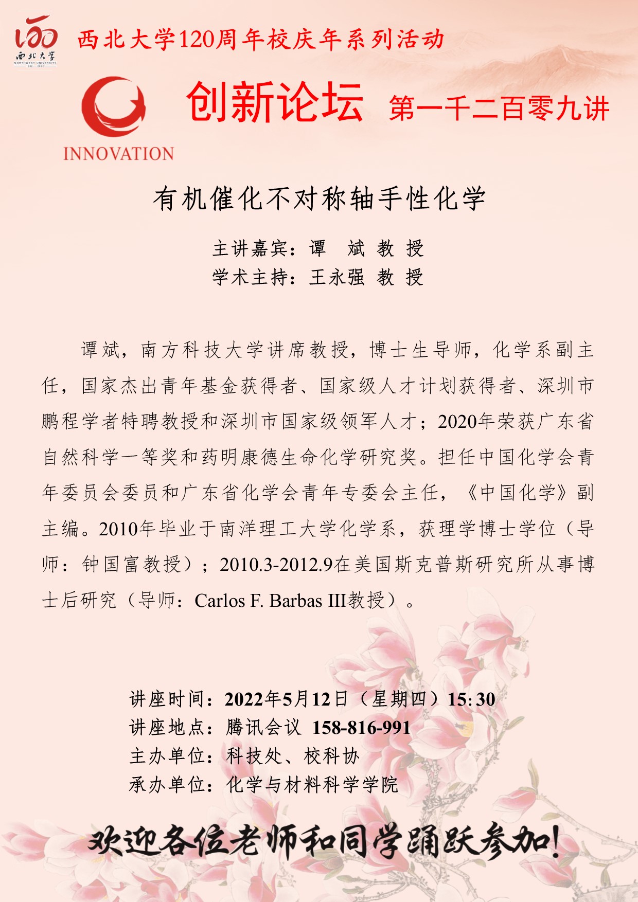 8868体育登录创新论坛第一千二百一十讲暨120周年校庆年系列活动:多环天然产物合成中的环系构建