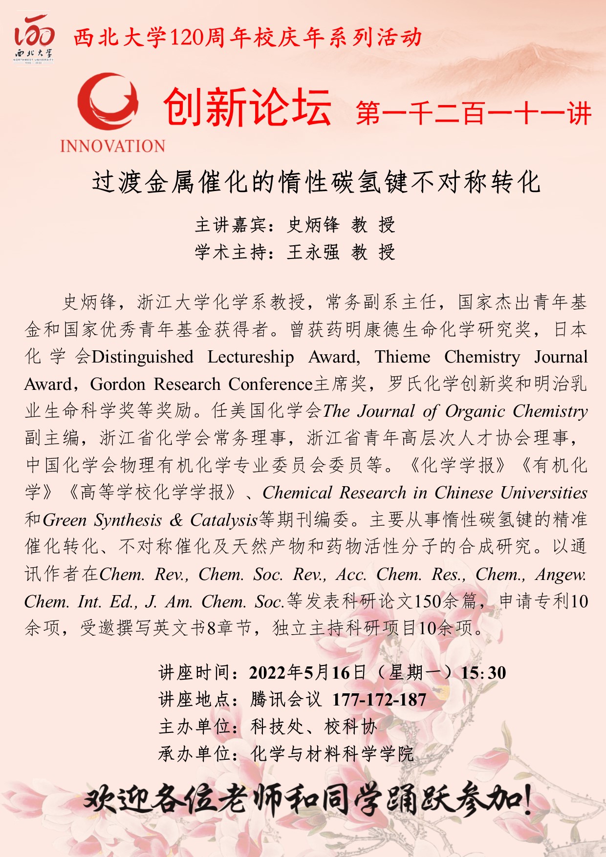 8868体育登录创新论坛第一千二百一十二讲暨120周年校庆年系列活动:病毒感染关键蛋白糖基化与药物研发---以SARS-CoV-2为例