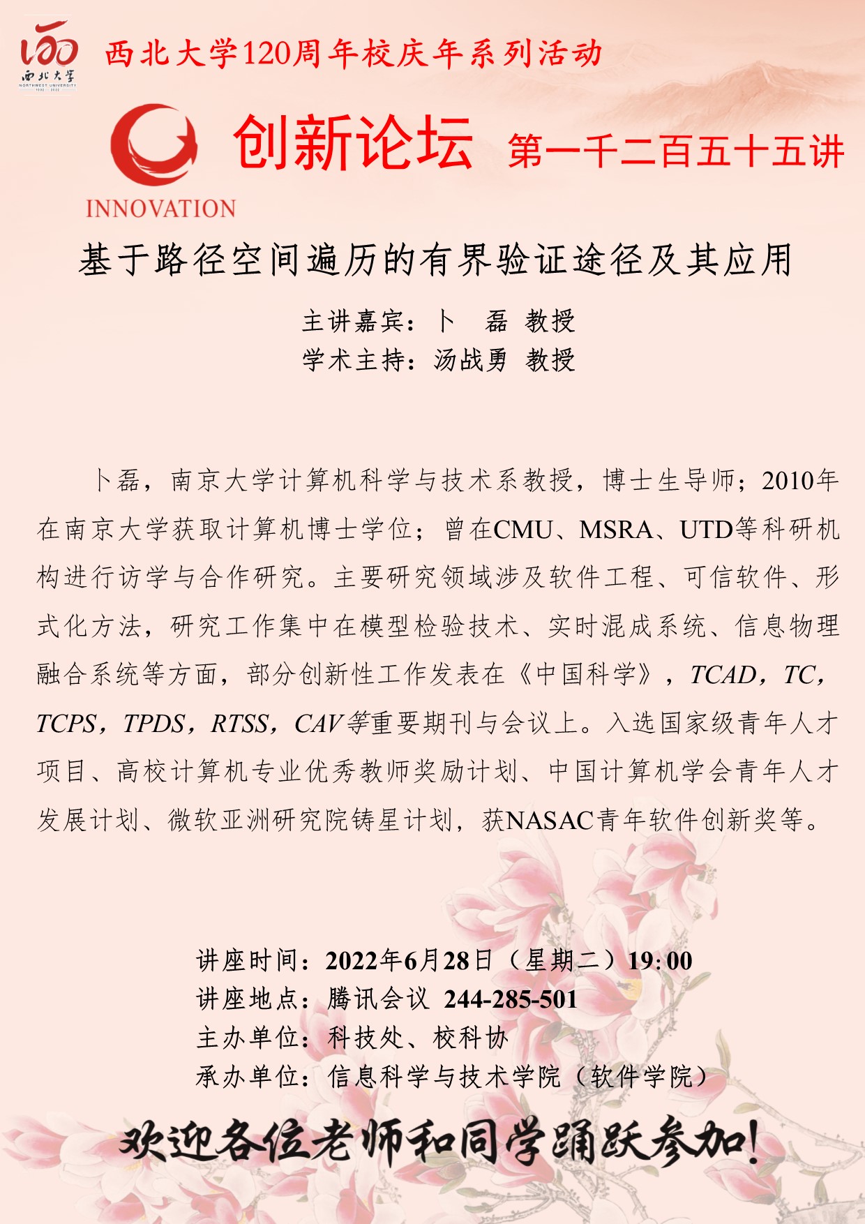 8868体育登录创新论坛第一千二百五十五讲暨120周年校庆年系列活动:基于路径空间遍历的有界验证途径及其应用