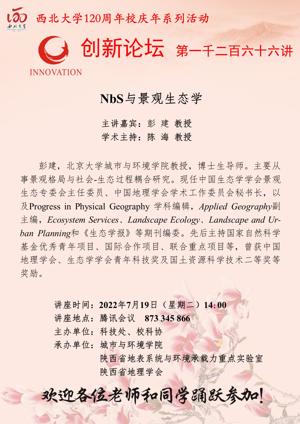 8868体育登录创新论坛第一千二百六十六讲暨120周年校庆年系列活动:NbS与景观生态学