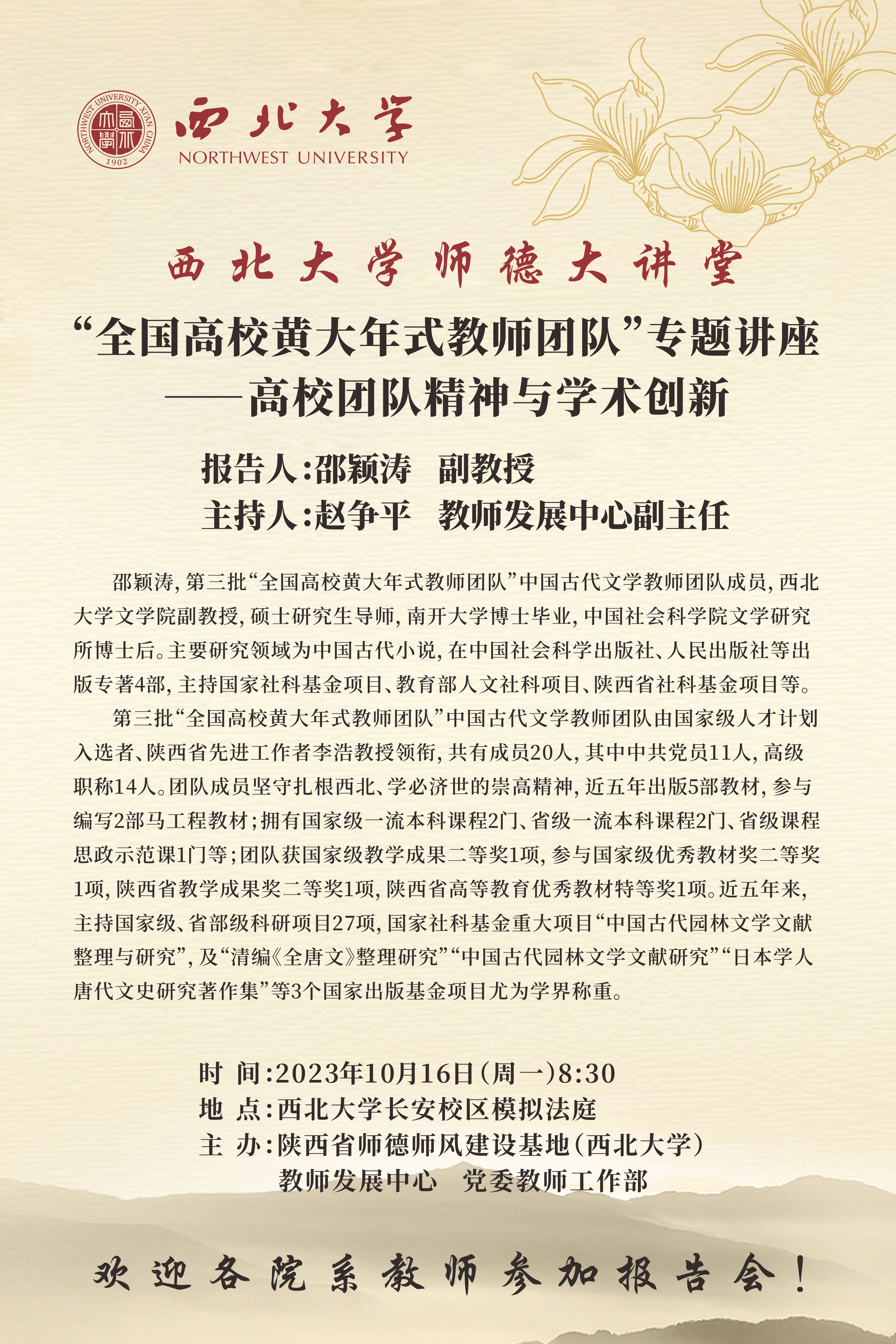 8868体育登录师德大讲堂:“全国高校黄大年式教师团队”专题讲座——高校团队精神与学术创新