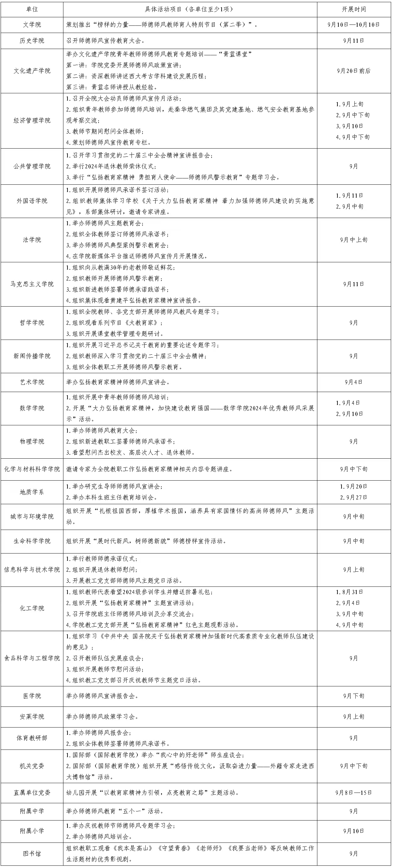 九月为8868体育登录的师德师风宣传月,为教育引导广大教师大力弘扬教育家精神,强化立德树人使命担当,进一步推进师德师风建设工作,形成教书育人、尊师重教的良好育人氛围,根据学校的工作安排,各单位围绕今年教师节“大力弘扬教育家精神,加快建设教育强国”主题,结合实际精心组织策划了系列师德师风教育宣传活动。现将具体活动安排公布如下,请各单位互相学习借鉴,创新工作,凸显特色亮点,激发师生的参与热情,共同推动8868体育登录师德师风宣传月活动深入开展、取得实效。
