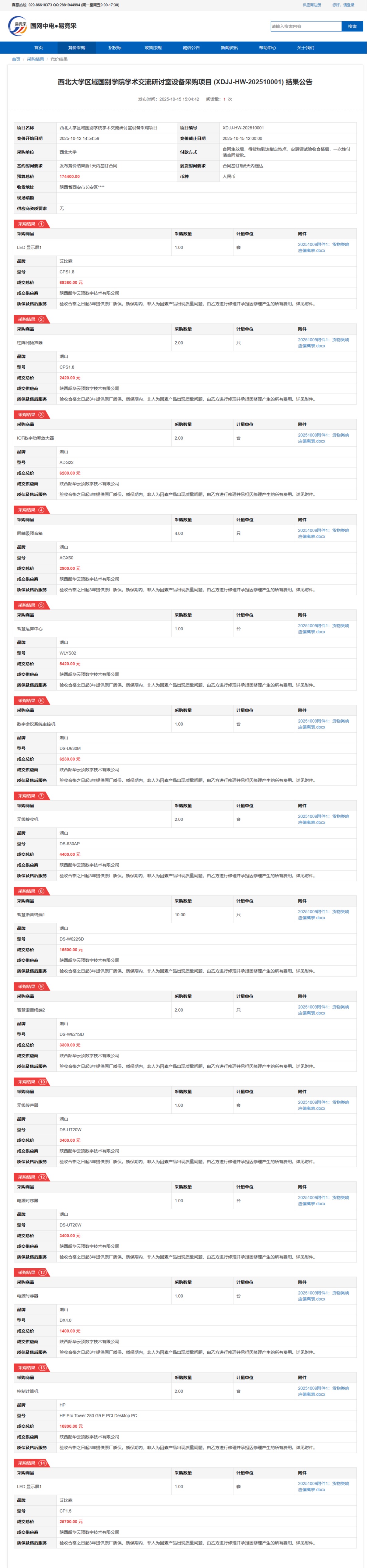 8868体育登录区域国别学院学术交流研讨室设备采购项目(XDJJ-HW-202510001)竞价结果公告