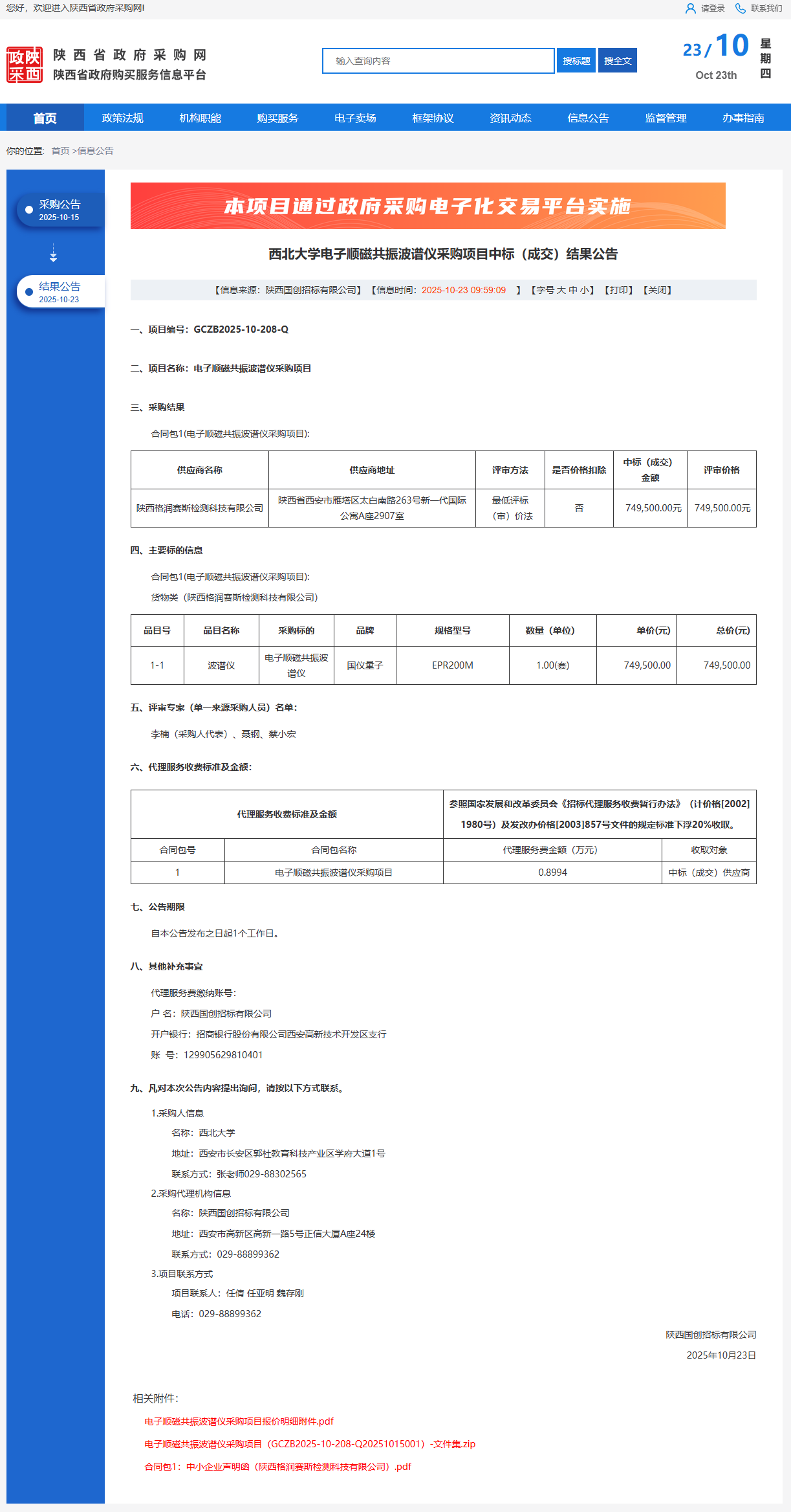 8868体育登录电子顺磁共振波谱仪采购项目中标(成交)结果公告
