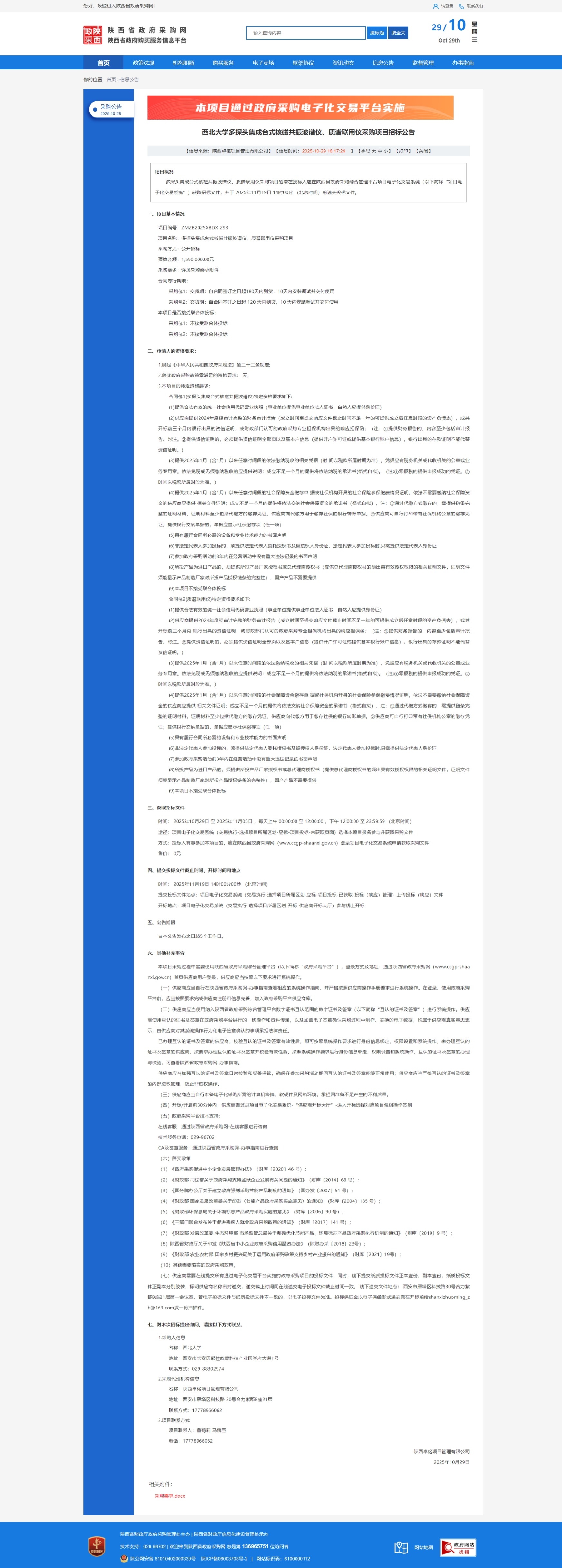 8868体育登录多探头集成台式核磁共振波谱仪、质谱联用仪采购项目招标公告 作者:国有资产管理处 编辑:国有资产管理处 时间:2025-10-29 原公告链接:https://www.ccgp-shaanxi.gov.cn/freecms/site/shaanxi/ggxx/info/2025/8a69c54f99f77a8f019a2efec46e4a64.html?noticeType=001011¬iceId=e7208489-b4a1-11f0-8063-08c0eb20c666