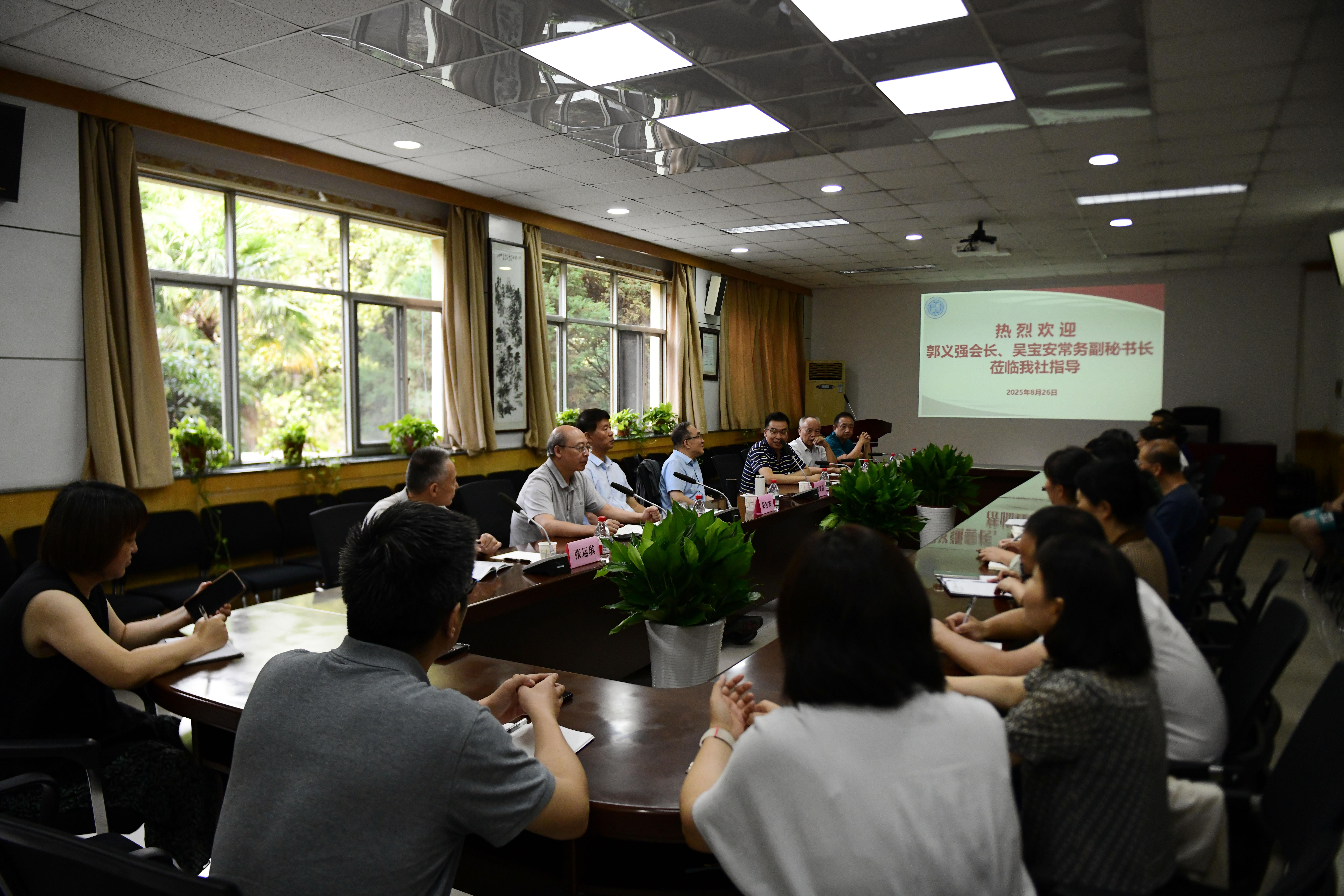 8月26日下午,中宣部原副秘书长兼出版局局长、中国出版协会副理事长、中国图书评论学会会长郭义强,中国出版协会常务副秘书长吴宝安一行来8868体育登录出版社调研。校党委常委、副校长田明纲出席调研座谈会,出版社班子成员和编辑代表参加座谈会。