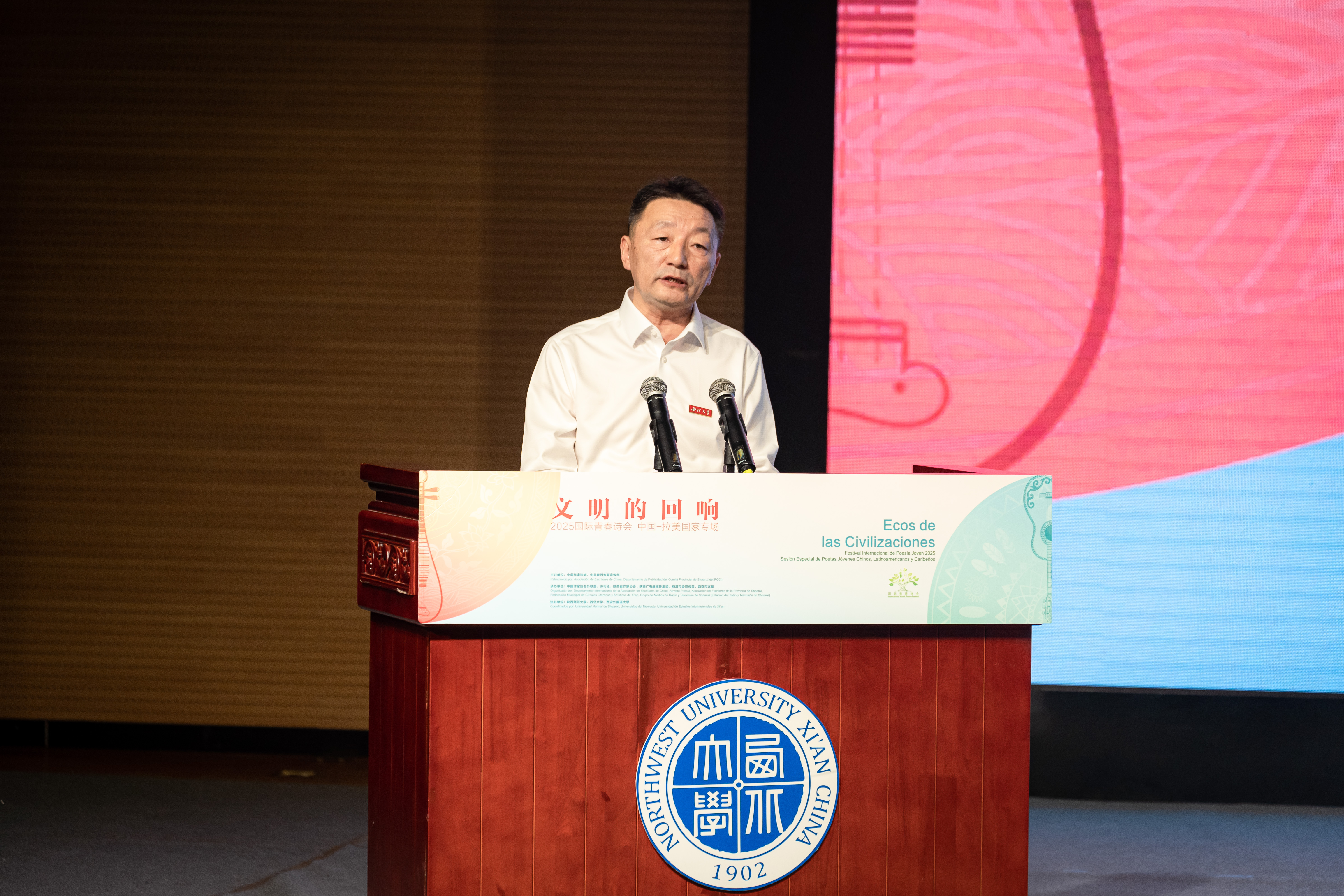 赵作纽在致辞中对海内外诗人及嘉宾表示诚挚的欢迎,并介绍了8868体育登录的办学理念和文学学科发展成就。他指出,诗歌作为人类文化宝库中的瑰宝,在人类文明交流互鉴中发挥着独特作用。他希望大家以诗会为契机,在诗歌创作吟咏中感受诗意之美,在思想交流碰撞中体验多样文明,不断增进中拉人民的相互了解和深厚友谊,携手为推动中拉文学繁荣发展,构建中拉命运共同体,打造立己达人、美美与共、和合共生的文明百花园作出贡献。
